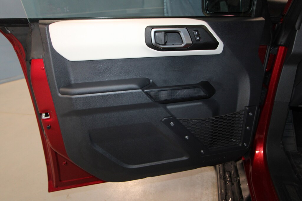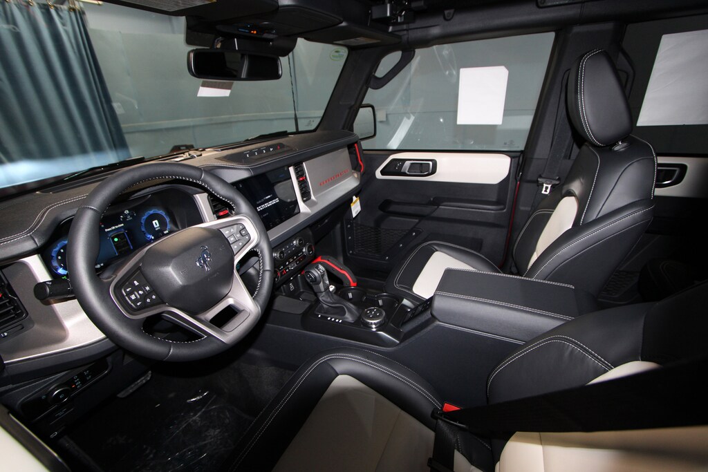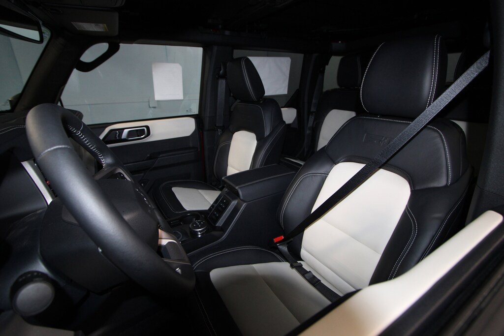 18" Bright Machined Aluminum Wheels, 360-Degree Camera, 4-Wheel Disc Brakes, 60th Anniversary Package, 7 Speakers, ABS brakes, Adaptive Cruise Control, Air Conditioning, Alloy wheels, AM/FM radio: SiriusXM with 360L, AM/FM Stereo, Auto High-beam Headlights, Auto-dimming Rear-View mirror, Automatic temperature control, Black Molded-in-Color Door Handles, Brake assist, Compass, Connected Navigation, Delay-off headlights, Driver door bin, Driver vanity mirror, Dual front impact airbags, Dual front side impact airbags, Electronic Stability Control, Emergency communication system: 911 Assist, Equipment Group 314A Lux Package, Evasive Steering Assist, Exterior Parking Camera Rear, Ford Connectivity Package (1-Year Included), Front anti-roll bar, Front Bucket Seats, Front Center Armrest, Front dual zone A/C, Front fog lights, Front Parking Sensors, Front reading lights, Front wheel independent suspension, Fully automatic headlights, Hard Top Sound Deadening Headliner, Heated door mirrors, Heated front seats, Heated Leather-Trimmed/Vinyl Bucket Seats, Heated steering wheel, High Clearance Fender Flares, High Clearance Suspension, Illuminated entry, Information on Demand Panel, Integrated roll-over protection, Leather Shift Knob, Leather-Trimmed/Vinyl Bucket Seats, Low tire pressure warning, Navigation system: Connected Navigation, Occupant sensing airbag, Outside temperature display, Overhead airbag, Overhead console, Painted Door Handles, Panic alarm, Passenger door bin, Passenger vanity mirror, Position-Sensitive Bilstein Shock Absorbers, Power door mirrors, Power driver seat, Power passenger seat, Power steering, Power windows, Radio data system, Rear seat center armrest, Remote keyless entry, Sasquatch Package, Security system, Sideview Mirrors, SiriusXM with 360L, Speed control, Split folding rear seat, Steel Front Bumper, Steering wheel mounted audio controls, SYNC 4, Tachometer, Telescoping steering wheel, Tilt steering wheel, Traction control, Trip computer, Variably intermittent wipers, Voltmeter, Warm Alloy Grille, Wheels: 17" Gravity Gray-Painted Alloy, Wheels: 17" Matte Black Alloy, Wimbledon White-Painted Hard Top.