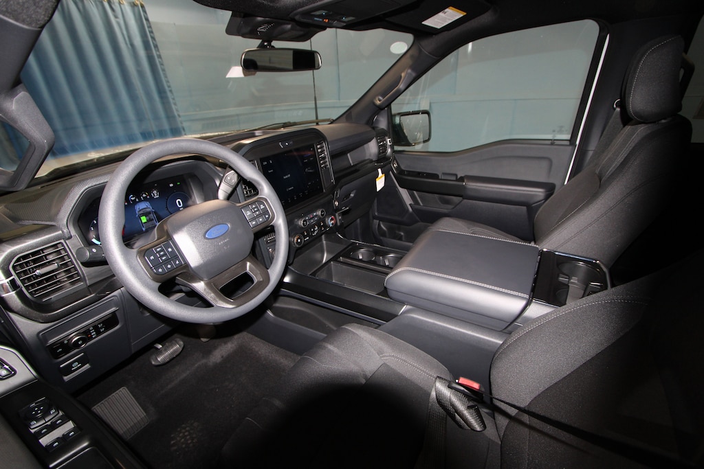 4WD, 12" Cluster Display, 4-Wheel Disc Brakes, 6 Speakers, ABS brakes, Air Conditioning, Alloy wheels, AM/FM radio: SiriusXM with 360L, Auto High-beam Headlights, Brake assist, Bumpers: body-color, Compass, Delay-off headlights, Driver door bin, Dual Exhaust with Black Tips, Dual front impact airbags, Dual front side impact airbags, Electronic Stability Control, Emergency communication system: SYNC 4 911 Assist, Equipment Group 200A Mid, F-150 Lobo Package, Ford Connectivity Package (1-Year Included), Front anti-roll bar, Front Bucket Seats, Front Center Armrest, Front reading lights, Front wheel independent suspension, Fully automatic headlights, GVWR: 6,650 lbs Payload Package, Heated door mirrors, Illuminated entry, Internet access capable: 5G Modem - Ford Connectivity Package, LED Fog Lamps with LED Cornering Lamp, Low tire pressure warning, Lower Body Ground Effects, Occupant sensing airbag, Outside temperature display, Overhead airbag, Overhead console, Painted Grille, Panic alarm, Passenger door bin, Passenger vanity mirror, Power door mirrors, Power steering, Power windows, Radio data system, Radio: AM/FM Stereo with SiriusXM 360L, Rear step bumper, Rear window defroster, Remote keyless entry, Security system, Signature Lighting, Speed control, Split folding rear seat, Steering wheel mounted audio controls, SYNC 4 with Enhanced Voice Recognition, Tachometer, Telescoping steering wheel, Tilt steering wheel, Traction control, Trip computer, Two-Speed Automatic 4WD with Neutral Towing Capability, Unique Sport Cloth 40/Console/40 Front-Seats, Variably intermittent wipers, Wheels: 18" Gloss Black, Wheels: 20" Dark Gray Aluminum, Wheels: 22" Aluminum, 4WD.