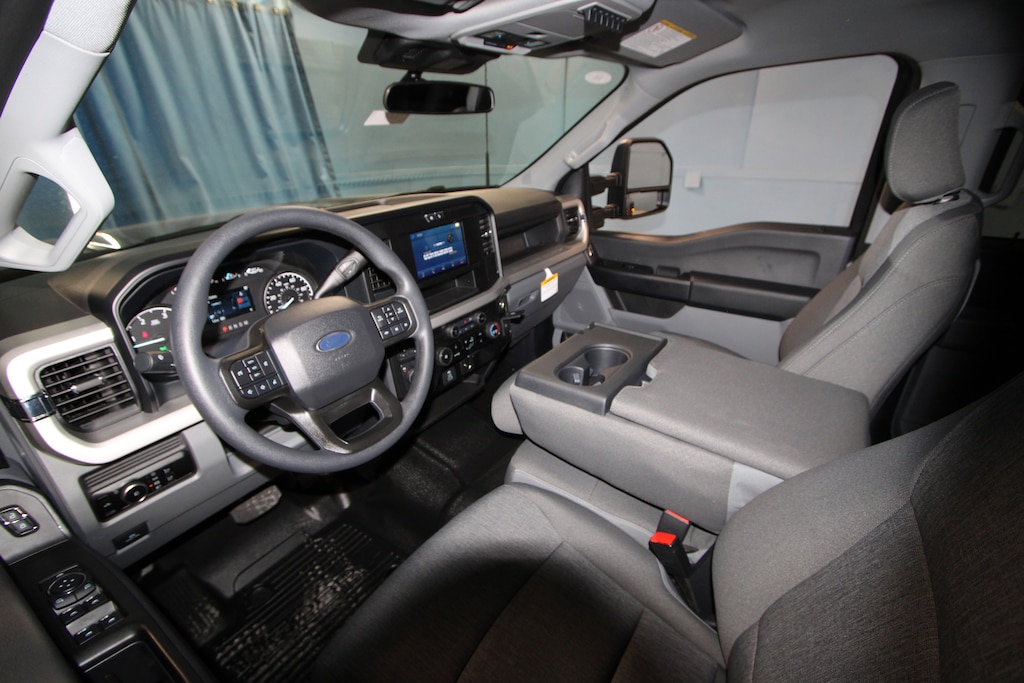 4WD, 19.5" Forged Polished Aluminum Wheels, 4-Wheel Disc Brakes, 410 Amp Dual Alternators, ABS brakes, Air Conditioning, Alloy wheels, Brake assist, Compass, Delay-off headlights, Dual front impact airbags, Dual front side impact airbags, Dual rear wheels, Electronic Stability Control, Emergency communication system: SYNC 4 911 Assist, Engine Block Heater, Ford Connectivity Package (1-Year Included), Front anti-roll bar, Front reading lights, Fully automatic headlights, FX4 Off-Road Package, GVWR: 14,000 Lb Payload Package, Heated door mirrors, Hill Descent Control, Illuminated entry, Internet access capable: 5G Modem - Ford Connectivity Package, Limited Slip with 4.30 Axle Ratio, Low tire pressure warning, Off-Road Specifically Tuned Shock Absorbers, Outside temperature display, Overhead airbag, Overhead console, Panic alarm, Passenger vanity mirror, Power door mirrors, Power steering, Power windows, Rapid-Heat Supplemental Cab Heater, Rear anti-roll bar, Rear reading lights, Rear step bumper, Remote keyless entry, Security system, Snow Plow Prep Package, Speed control, Split folding rear seat, Steering wheel mounted audio controls, Tachometer, Telescoping steering wheel, Tilt steering wheel, Traction control, Trip computer, Turn signal indicator mirrors, Unique FX4 Off-Road Box Decal, Upfitter Switches (6), Variably intermittent wipers, 4WD.