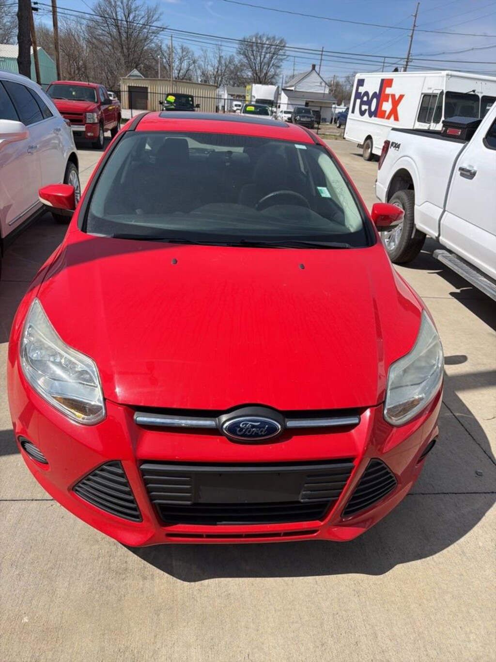 2013 Ford Focus SE Recent Arrival! VEHICLE SOLD AS-IS. We want you to shop confidently for your next used car at The BIG Ford Store, D-Patrick Ford. We are located on Highway 41 and Walnut in Evansville, right next to the Lloyd Expressway. This vehicle’s low price is reflective of its age, condition, and mileage and we do not warrant its mechanical or overall condition. This vehicle is provided with a CarFax vehicle history report. This is an AS-IS vehicle and is not available for additional service plans. *Prices listed do not include a $250 documentation fee, applicable tax, title, tags, license, or $195 service and preparation. All pricing, vehicle information, and features (such as accessories and color) are believed to be accurate, but we do not warrant or guarantee such accuracy. The prices shown above may vary from region to region, and incentives are subject to change. Some offers listed may not be available to all customers. All online sale commitments are subject to confirmation of continued availability of vehicle. Once availability is confirmed, online sale agreement becomes binding upon the parties. If any information found on the website is thought to be erroneous, please verify information with a customer service representative. See dealer for full details. Looking to sell your current vehicle? We buy cars for cash. Every test drive at D-Patrick Ford in Evansville earns $10 to a local charity. Schedule your test drive today! 16 Painted Aluminum Alloy Wheels, 6 Speakers, ABS brakes, Air Conditioning, Alloy wheels, AM/FM radio, Brake assist, Bumpers: body-color, CD player, Cloth Front Bucket Seats, Compass, Delay-off headlights, Driver door bin, Driver vanity mirror, Dual front impact airbags, Dual front side impact airbags, Electronic Stability Control, Equipment Group 200A, Four wheel independent suspension, Front anti-roll bar, Front Bucket Seats, Front Center Armrest, Fully automatic headlights, Illuminated entry, Knee airbag, Low tire pressure warning, Occupant sensing airbag, Outside temperature display, Overhead airbag, Panic alarm, Passenger door bin, Passenger vanity mirror, Power door mirrors, Power Moonroof, Power steering, Power windows, Radio data system, Radio: AM/FM Single-CD/MP3-Capable, Rear anti-roll bar, Rear seat center armrest, Rear window defroster, Rear window wiper, Remote keyless entry, Speed control, Split folding rear seat, Spoiler, Steering wheel mounted audio controls, Tachometer, Telescoping steering wheel, Tilt steering wheel, Traction control, Trip computer, Variably intermittent wipers. 4D Hatchback SE 6-Speed Automatic with Powershift 2.0L I4 DGI Flex Fuel Ti-VCT FWD Race Red CALL TODAY (812) 625-4823 OR SHOP ONLINE AT WWW.DPATRICKFORD.COM.