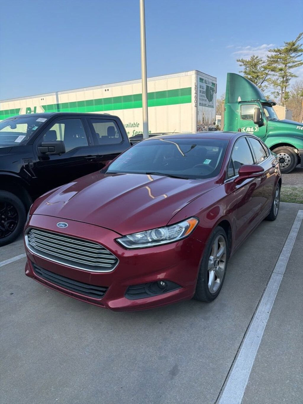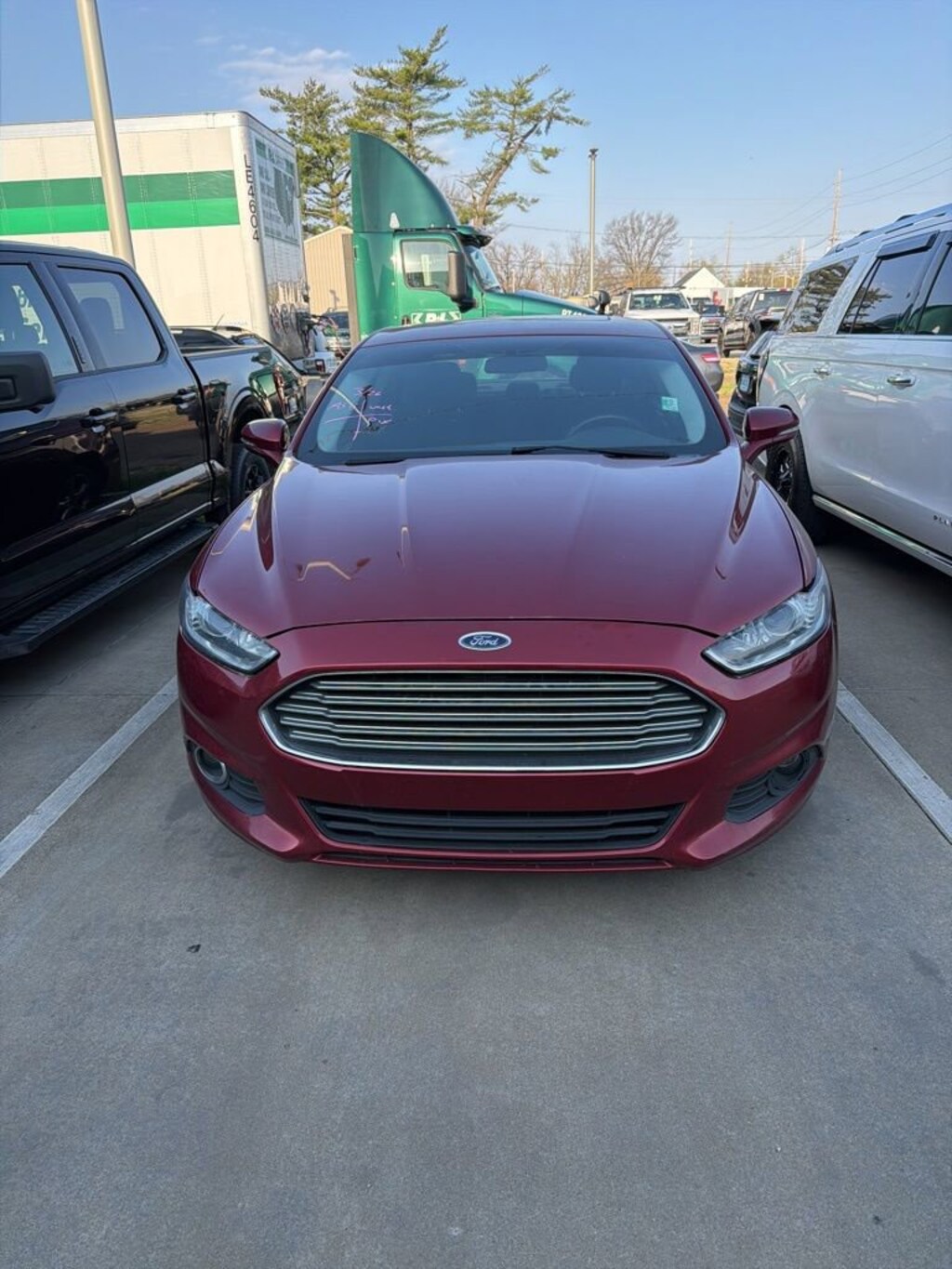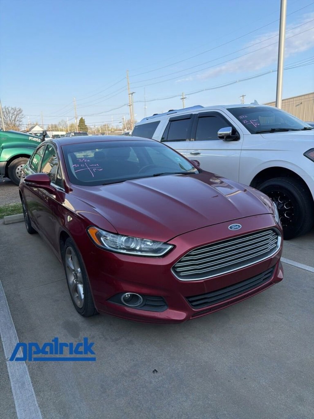 2016 Ford Fusion SE Recent Arrival! VEHICLE SOLD AS-IS. We want you to shop confidently for your next used car at The BIG Ford Store, D-Patrick Ford. We are located on Highway 41 and Walnut in Evansville, right next to the Lloyd Expressway. This vehicleâs low price is reflective of its age, condition, and mileage and we do not warrant its mechanical or overall condition. This vehicle is provided with a CarFax vehicle history report. This is an AS-IS vehicle and is not available for additional service plans. *Prices listed do not include a $250 documentation fee, applicable tax, title, tags, license, or $195 service and preparation. All pricing, vehicle information, and features (such as accessories and color) are believed to be accurate, but we do not warrant or guarantee such accuracy. The prices shown above may vary from region to region, and incentives are subject to change. Some offers listed may not be available to all customers. All online sale commitments are subject to confirmation of continued availability of vehicle. Once availability is confirmed, online sale agreement becomes binding upon the parties. If any information found on the website is thought to be erroneous, please verify information with a customer service representative. See dealer for full details. Looking to sell your current vehicle? We buy cars for cash. Every test drive at D-Patrick Ford in Evansville earns $10 to a local charity. Schedule your test drive today! 6-Speed Automatic, AWD, 10 Speakers, 18 Premium Painted Aluminum Wheels, 4-Wheel Disc Brakes, 6 Speakers, ABS brakes, Air Conditioning, All Weather Floor Mats, Alloy wheels, AM/FM radio: SiriusXM, Appearance Package, Brake assist, Bumpers: body-color, CD player, Compass, Delay-off headlights, Driver door bin, Driver vanity mirror, Dual front impact airbags, Dual front side impact airbags, Dual Zone Electronic Automatic Temperature Control, EcoCloth Front Bucket Seats, Electronic Stability Control, Emergency communication system: 911 Assist, Equipment Group 201A, Exterior Parking Camera Rear, Fog Lamps, Four wheel independent suspension, Front anti-roll bar, Front Bucket Seats, Front Center Armrest, Front License Plate Bracket, Front reading lights, Fully automatic headlights, Heated door mirrors, Illuminated entry, Knee airbag, Leather-Wrapped Steering Wheel, Low tire pressure warning, Occupant sensing airbag, Outside temperature display, Overhead airbag, Overhead console, Panic alarm, Passenger door bin, Passenger vanity mirror, Power Code Remote Start System, Power door mirrors, Power driver seat, Power Moonroof, Power passenger seat, Power steering, Power windows, Radio data system, Radio: AM/FM Stereo/MP3/Single-CD, Rear anti-roll bar, Rear reading lights, Rear seat center armrest, Rear Spoiler, Rear window defroster, Remote keyless entry, Reverse Sensing System, SE MyFord Touch Technology Package, Security system, SiriusXM Radio, Speed control, Speed-sensing steering, Speed-Sensitive Wipers, Split folding rear seat, Spoiler, Steering wheel mounted audio controls, SYNC Communications & Entertainment System, SYNC w/MyFord Touch, Tachometer, Telescoping steering wheel, Tilt steering wheel, Traction control, Trip computer, Turn signal indicator mirrors, Universal Garage Door Opener, Valet Key, Variably intermittent wipers, Voice-Activated Navigation, 6-Speed Automatic, AWD. 4D Sedan SE 6-Speed Automatic EcoBoost 2.0L I4 GTDi DOHC Turbocharged VCT AWD Ruby Red Metallic CALL TODAY (812) 625-4823 OR SHOP ONLINE AT WWW.DPATRICKFORD.COM.