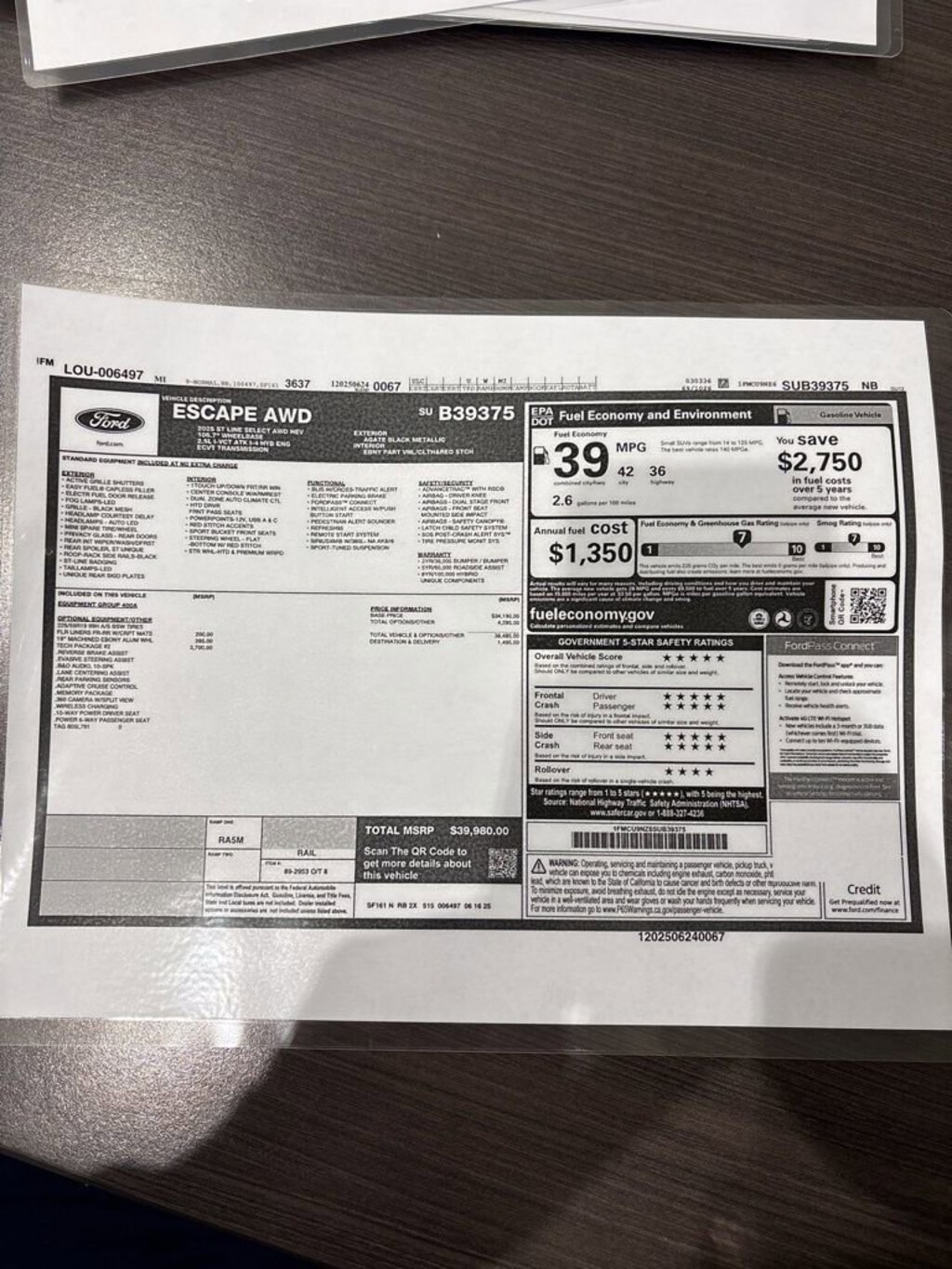 2025 Ford Escape Hybrid ST-Line Select Recent Arrival! We want you to shop confidently for your next used car at The BIG Ford Store, D-Patrick Ford. We are located on Highway 41 and Walnut in Evansville, right next to the Lloyd Expressway. Buy this used vehicle 100% online or in-store. This pre-owned vehicle was put through an extensive inspection before hitting our lot. Because of this, we are able to offer a 3-month/3,000-mile comprehensive limited warranty. You also get our Love It or Return It 5-day, 300-mile Exchange Policy. See our website for more details on both. We also offer extended service plans, vehicle protection plans, and offer a free to you CarFax vehicle history report. *Prices listed do not include a $250 documentation fee, applicable tax, title, tags, license, or $195 service and preparation. All pricing, vehicle information, and features (such as accessories and color) are believed to be accurate, but we do not warrant or guarantee such accuracy. The prices shown above may vary from region to region, and incentives are subject to change. Some offers listed may not be available to all customers. All online sale commitments are subject to confirmation of continued availability of vehicle. Once availability is confirmed, online sale agreement becomes binding upon the parties. If any information found on the website is thought to be erroneous, please verify information with a customer service representative. See dealer for full details. Looking to sell your current vehicle? We buy cars for cash. Every test drive at D-Patrick Ford in Evansville earns $10 to a local charity. Schedule your test drive today! 2.5L iVCT, 10-Way Power Driver's Seat, 12.3 Productivity Screen in Instrument Cluster, 2.91 Axle Ratio, 360-Degree Camera w/Split View, 4-Wheel Disc Brakes, 6 Speakers, 6-Way Power Passenger Seat, ABS brakes, Adaptive Cruise Control w/Stop-and-Go, Air Conditioning, Alloy wheels, AM/FM radio: SiriusXM, AM/FM Stereo, Auto High-beam Headlights, Automatic temperature control, Body Color Mirrors, Brake assist, Bumpers: body-color, Compass, Connected Navigation, Delay-off headlights, Driver door bin, Driver vanity mirror, Dual front impact airbags, Dual front side impact airbags, Electronic Fuel Door Release, Electronic Stability Control, Emergency communication system: SYNC 4 911 Assist, Equipment Group 400A, Ford Co-Pilot360 Assist 2.0, FordPass Connect, Four wheel independent suspension, Front & Rear Floor Liners w/Carpet Mats, Front anti-roll bar, Front Bucket Seats, Front Center Armrest, Front dual zone A/C, Front fog lights, Front reading lights, Fully automatic headlights, HD Radio, Heated door mirrors, Heated front seats, Heated steering wheel, Heated Vinyl/Cloth Front Sport Contour Bucket Seats, Illuminated entry, Internet access capable: FordPass Connect 4G, Intersection Assist, Knee airbag, Low tire pressure warning, Memory Package, Neutral Towing Capability, Occupant sensing airbag, Outside temperature display, Overhead airbag, Overhead console, Panic alarm, Passenger door bin, Passenger vanity mirror, Pedestrian Alert Sounder, Power door mirrors, Power driver seat, Power Liftgate, Power steering, Power windows, Predictive Speed Assist, Radio data system, Radio: B&O Sound System by Bang & Olufsen, Rear anti-roll bar, Rear Parking Sensor, Rear reading lights, Rear seat center armrest, Rear window defroster, Rear window wiper, Remote keyless entry, Reverse Brake Assist, Speed control, Speed-sensing steering, Speed-Sensitive Wipers, Split folding rear seat, Spoiler, Sport steering wheel, Steering wheel mounted audio controls, SYNC 4, SYNC 4 w/Enhanced Voice Recognition, Tachometer, Tech Pack #2, Telescoping steering wheel, Tilt steering wheel, Traction control, Trip computer, Variably intermittent wipers, Wheels: 18 Rock Metallic Painted Aluminum, Wheels: 19 Machined-Face Ebony-Painted Aluminum, Wireless Charging Pad, 2.5L iVCT. CARFAX One-Owner. Clean CARFAX. 4D Sport Utility ST-Line Select eCVT 2.5L iV