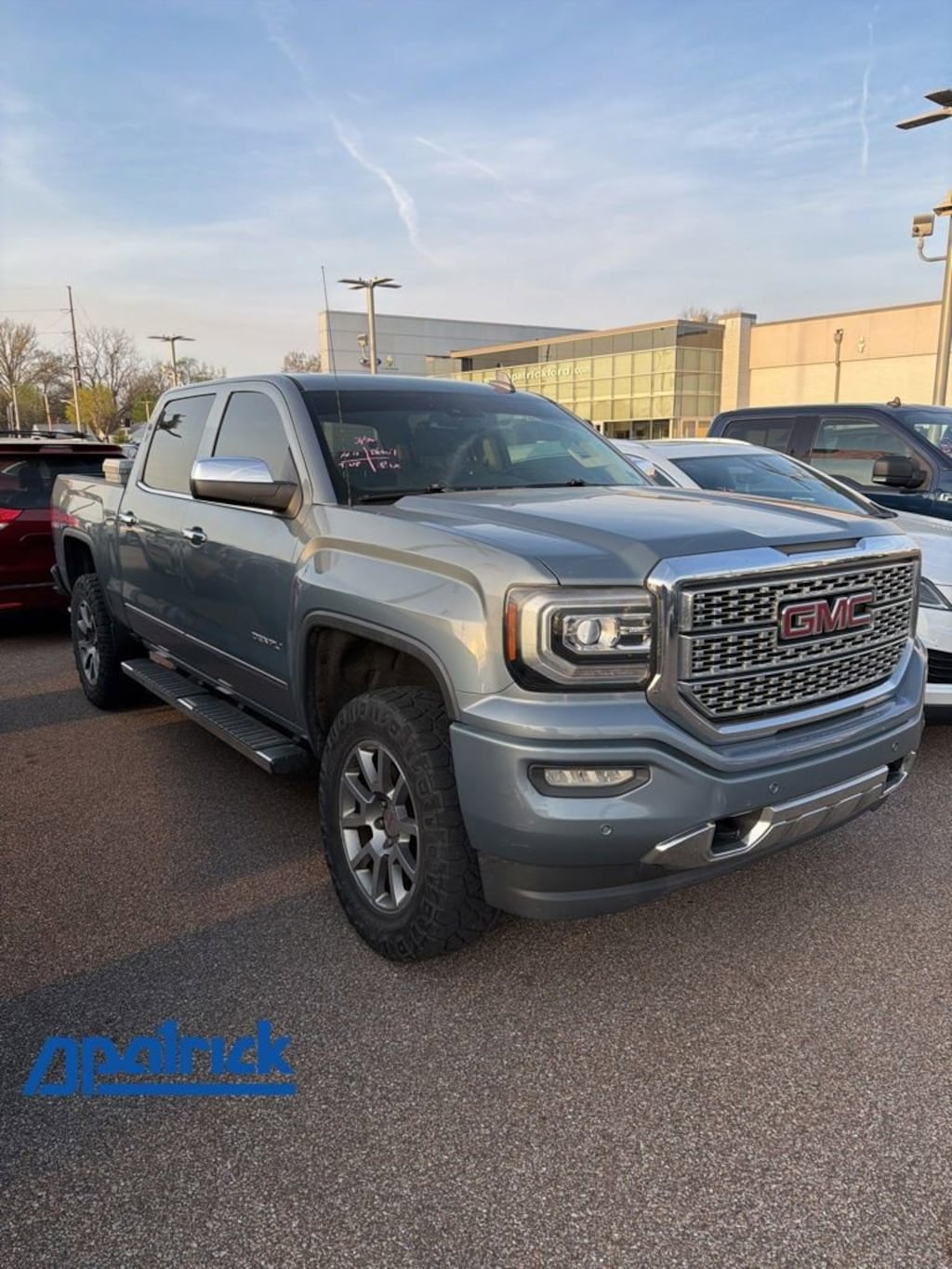 2016 GMC Sierra 1500 Denali Recent Arrival! VEHICLE SOLD AS-IS. We want you to shop confidently for your next used car at The BIG Ford Store, D-Patrick Ford. We are located on Highway 41 and Walnut in Evansville, right next to the Lloyd Expressway. This vehicleâs low price is reflective of its age, condition, and mileage and we do not warrant its mechanical or overall condition. This vehicle is provided with a CarFax vehicle history report. This is an AS-IS vehicle and is not available for additional service plans. *Prices listed do not include a $250 documentation fee, applicable tax, title, tags, license, or $195 service and preparation. All pricing, vehicle information, and features (such as accessories and color) are believed to be accurate, but we do not warrant or guarantee such accuracy. The prices shown above may vary from region to region, and incentives are subject to change. Some offers listed may not be available to all customers. All online sale commitments are subject to confirmation of continued availability of vehicle. Once availability is confirmed, online sale agreement becomes binding upon the parties. If any information found on the website is thought to be erroneous, please verify information with a customer service representative. See dealer for full details. Looking to sell your current vehicle? We buy cars for cash. Every test drive at D-Patrick Ford in Evansville earns $10 to a local charity. Schedule your test drive today! 8-Speed Automatic with Overdrive, 4WD, Cocoa/Dune Leather, 110-Volt AC Power Outlet, 150 Amp Alternator, 1st & 2nd Row Color-Keyed Carpeted Floor Mats, 2-Speed Active Electronic AutoTrac Transfer Case, 3.42 Rear Axle Ratio, 4-Wheel Disc Brakes, 6 Rectangular Chromed Tubular Assist Steps, 7 Speakers, 8 Multi-Color Customizable Driver Display, ABS brakes, Adjustable pedals, Air Conditioning, Alloy wheels, AM/FM radio: SiriusXM, Apple CarPlay, Auto-dimming door mirrors, Auto-Dimming Inside Rear-View Mirror, Auto-dimming Rear-View mirror, Automatic temperature control, Body Color Front Bumper, Body Color Rear Bumper w/Cornersteps, Bodyside moldings, Bose Speaker System, Brake assist, Bumpers: body-color, CD player, Chrome Bodyside Moldings, Chrome Door Handles, Chrome Mirror Caps, Color-Keyed Carpeting w/Rubberized Vinyl Floor Mats, Compass, Deep-Tinted Glass, Delay-off headlights, Driver & Front Passenger Illuminated Vanity Mirrors, Driver door bin, Driver vanity mirror, Dual front impact airbags, Dual front side impact airbags, Dual-Zone Automatic Climate Control, Electric Rear-Window Defogger, Electronic Stability Control, Emergency communication system: OnStar Guidance, Enhanced Driver Alert Package, Exterior Parking Camera Rear, EZ Lift & Lower Tailgate, Floor Mounted Console, Forward Collision Alert, Front & Rear All-Weather Floor Mats, Front anti-roll bar, Front Center Armrest w/Storage, Front dual zone A/C, Front fog lights, Front Frame-Mounted Black Recovery Hooks, Front Full Feature Power Reclining Bucket Seats, Front reading lights, Front wheel independent suspension, Fully automatic headlights, Garage door transmitter: HomeLink, HD Radio, Heated & Vented Front Bucket Seats, Heated door mirrors, Heated front seats, Heated steering wheel, Illuminated entry, Integrated Trailer Brake Controller, IntelliBeam Automatic High Beam On/Off Headlight, Interior Driver Assist Handle (LPO), Lane Keep Assist, Leather Wrapped Heated Steering Wheel, Low tire pressure warning, MagneRide Magnetic Ride Control Suspension, Manual Tilt/Telescoping Steering Column, Memory seat, Navigation System, Occupant sensing airbag, OnStar 6 Month Guidance Plan, OnStar w/4G LTE, Outside temperature display, Overhead airbag, Overhead console, Panic alarm, Passenger door bin, Passenger vanity mirror, Perforated Leather Appointed Seat Trim, Polished Exhaust Tip, Power Adjustable Pedals, Power door mirrors, Power driver seat, Power Folding & Adjustable Heated Outside Mirrors, Power passenger seat, Power Slidi
