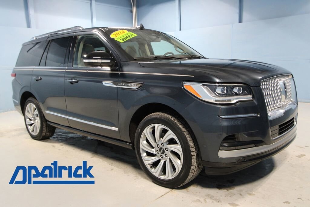 2024 Lincoln Navigator Reserve We want you to shop confidently for your next used car at The BIG Ford Store, D-Patrick Ford. We are located on Highway 41 and Walnut in Evansville, right next to the Lloyd Expressway. Buy this used vehicle 100% online or in-store. This pre-owned vehicle was put through an extensive inspection before hitting our lot. Because of this, we are able to offer a 3-month/3,000-mile comprehensive limited warranty. You also get our Love It or Return It 5-day, 300-mile Exchange Policy. See our website for more details on both. We also offer extended service plans, vehicle protection plans, and offer a free to you CarFax vehicle history report. *Prices listed do not include a $250 documentation fee, applicable tax, title, tags, license, or $195 service and preparation. All pricing, vehicle information, and features (such as accessories and color) are believed to be accurate, but we do not warrant or guarantee such accuracy. The prices shown above may vary from region to region, and incentives are subject to change. Some offers listed may not be available to all customers. All online sale commitments are subject to confirmation of continued availability of vehicle. Once availability is confirmed, online sale agreement becomes binding upon the parties. If any information found on the website is thought to be erroneous, please verify information with a customer service representative. See dealer for full details. Looking to sell your current vehicle? We buy cars for cash. Every test drive at D-Patrick Ford in Evansville earns $10 to a local charity. Schedule your test drive today! 4WD, Sandstone Leather, 14 Speakers, 3.73 Axle Ratio, 3rd row seats: split-bench, 4-Wheel Disc Brakes, ABS brakes, Adaptive suspension, Adjustable pedals, Air Conditioning, All-Weather Floor Liners w/o Fr/Rr Carpet Flr Mats, Alloy wheels, AM/FM radio: SiriusXM with 360L, Apple CarPlay/Android Auto, Audio memory, Auto High-beam Headlights, Auto Start-Stop Technology, Auto tilt-away steering wheel, Auto-dimming door mirrors, Auto-dimming Rear-View mirror, Auto-leveling suspension, Automatic temperature control, Bodyside moldings, Brake assist, Bumpers: body-color, Compass, Delay-off headlights, Driver door bin, Driver vanity mirror, Driver's Seat Mounted Armrest, Dual front impact airbags, Dual front side impact airbags, Electronic Stability Control, Emergency communication system: 911 Assist, Equipment Group 201A Reserve I, Exterior Parking Camera Rear, Four wheel independent suspension, Front anti-roll bar, Front Bucket Seats, Front dual zone A/C, Front fog lights, Front reading lights, Fully automatic headlights, Garage door transmitter, Genuine wood dashboard insert, Genuine wood door panel insert, Head restraints memory, Heads-Up Display, Heated door mirrors, Heated front seats, Heated rear seats, Heated steering wheel, HVAC memory, Illuminated 1st & 2nd Row Seat Belts, Illuminated entry, Lane Departure Warning System, Leather steering wheel, Lincoln Lit Star in Grille, Low tire pressure warning, Luxury Package, Memory seat, Navigation system: Connected Navigation (1-year trial), Occupant sensing airbag, Outside temperature display, Overhead airbag, Overhead console, Panic alarm, Passenger door bin, Passenger seat mounted armrest, Passenger vanity mirror, Pedal memory, Perfect Position Seats (30-Way) w/Active Motion, Power adjustable rear head restraints, Power door mirrors, Power driver seat, Power Liftgate, Power moonroof: Panoramic Vista Roof, Power passenger seat, Power steering, Power windows, Prem Lthr Auto Htd/Ventiltd Perfect Position Seats, Radio data system, Radio: Revel Audio System w/Satelllite/AM/FM/HD, Radio: Revel Ultima 3D Audio System w/28 Speakers, Rain sensing wipers, Rear air conditioning, Rear anti-roll bar, Rear audio controls, Rear reading lights, Rear window defroster, Rear window wiper, Reclining 3rd row seat, Remote keyless entry, Security system, SiriusXM w/360L, Speed control, Speed-sensing steering, Sp