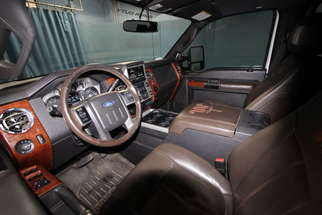 2015 Ford F-350SD King Ranch Recent Arrival! VEHICLE SOLD AS-IS. We want you to shop confidently for your next used car at The BIG Ford Store, D-Patrick Ford. We are located on Highway 41 and Walnut in Evansville, right next to the Lloyd Expressway. This vehicleâs low price is reflective of its age, condition, and mileage and we do not warrant its mechanical or overall condition. This vehicle is provided with a free to you CarFax vehicle history report. This is an AS-IS vehicle and is not available for additional service plans. *Prices listed do not include a $250 documentation fee, applicable tax, title, tags, license, or $195 service and preparation. All pricing, vehicle information, and features (such as accessories and color) are believed to be accurate, but we do not warrant or guarantee such accuracy. The prices shown above may vary from region to region, and incentives are subject to change. Some offers listed may not be available to all customers. All online sale commitments are subject to confirmation of continued availability of vehicle. Once availability is confirmed, online sale agreement becomes binding upon the parties. If any information found on the website is thought to be erroneous, please verify information with a customer service representative. See dealer for full details. Looking to sell your current vehicle? We buy cars for cash. Every test drive at D-Patrick Ford in Evansville earns $10 to a local charity. Schedule your test drive today! 4WD, 10 Speakers, 18 Chrome Clad Cast Aluminum Wheels, 20 Chrome Clad Cast Aluminum Wheels, 3.73 Axle Ratio, 4-Wheel Disc Brakes, 5th Wheel/Gooseneck Hitch Prep Package, ABS brakes, Adjustable pedals, Air Conditioning, Alloy wheels, AM/FM radio: SiriusXM, Auto-dimming Rear-View mirror, Automatic temperature control, Brake assist, Bumpers: chrome, CD player, Colored Front & Rear Rancho Branded Shocks, Compass, Delay-off headlights, Driver door bin, Driver vanity mirror, Dual Alternators (Total 357-Amps), Dual front impact airbags, Dual front side impact airbags, Electronic Locking w/3.55 Axle Ratio, Electronic Stability Control, Engine Block Heater, Exterior Parking Camera Rear, Extra Heavy Duty 200-Amp Alternator, Front & Rear Splash Guards/Mud Flaps, Front anti-roll bar, Front Bucket Seats, Front Center Armrest, Front dual zone A/C, Front fog lights, Front reading lights, Fully automatic headlights, FX4 Off-Road Package, Gooseneck Hitch Kit, Heated door mirrors, Heated Rear Seats, Hill Descent Control, Illuminated entry, King Ranch w/Chrome Package, Leather steering wheel, Low tire pressure warning, Order Code 618A, Outside temperature display, Overhead airbag, Overhead console, Panic alarm, Passenger door bin, Passenger vanity mirror, Power door mirrors, Power driver seat, Power passenger seat, Power steering, Power windows, Premium audio system: Sony, Premium Leather Seating Surfaces 40/Console/40, Radio data system, Radio: Premium Sony Audio w/Single CD/MP3, Rapid-Heat Supplemental Cab Heater, Rear Parking Sensors, Rear reading lights, Rear seat center armrest, Rear step bumper, Rear window defroster, Remote keyless entry, Roof Marker/Clearance Lamps, Security system, SiriusXM Satellite Radio, Snow Plow Prep Package, Speed control, Split folding rear seat, Steering wheel mounted audio controls, SYNC w/MyFord Touch & SYNC Services, Tachometer, Tailgate Step & Handle, Telescoping steering wheel, Tilt steering wheel, Tough Bed Spray-In Bedliner, Traction control, Trip computer, Turn signal indicator mirrors, Universal Garage Door Opener, Upfitter Switches (4), Variably intermittent wipers, Wheel Well Liner (LPO), 4WD. Clean CARFAX. 4D Crew Cab King Ranch TorqShift 6-Speed Automatic Power Stroke 6.7L V8 DI 32V OHV Turbodiesel 4WD White Platinum Metallic Tri-Coat CALL TODAY (812) 625-4823 OR SHOP ONLINE AT WWW.DPATRICKFORD.COM.